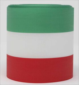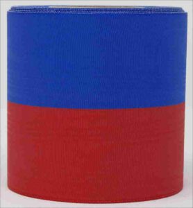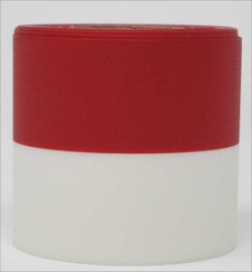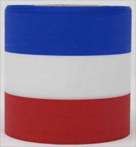 Ihr Vorteil: Bandüberlappungen wie sie beim beim zusammennähen enstehen….entfallen. Auch kann hier das Verhältnis der einzelnen Farbbreiten bestimmt werden. So ist es möglich z.B. ein Band 15 cm breit in rot mit je einem beidseitig schmalen weißen Rand anfertigen zu lassen.